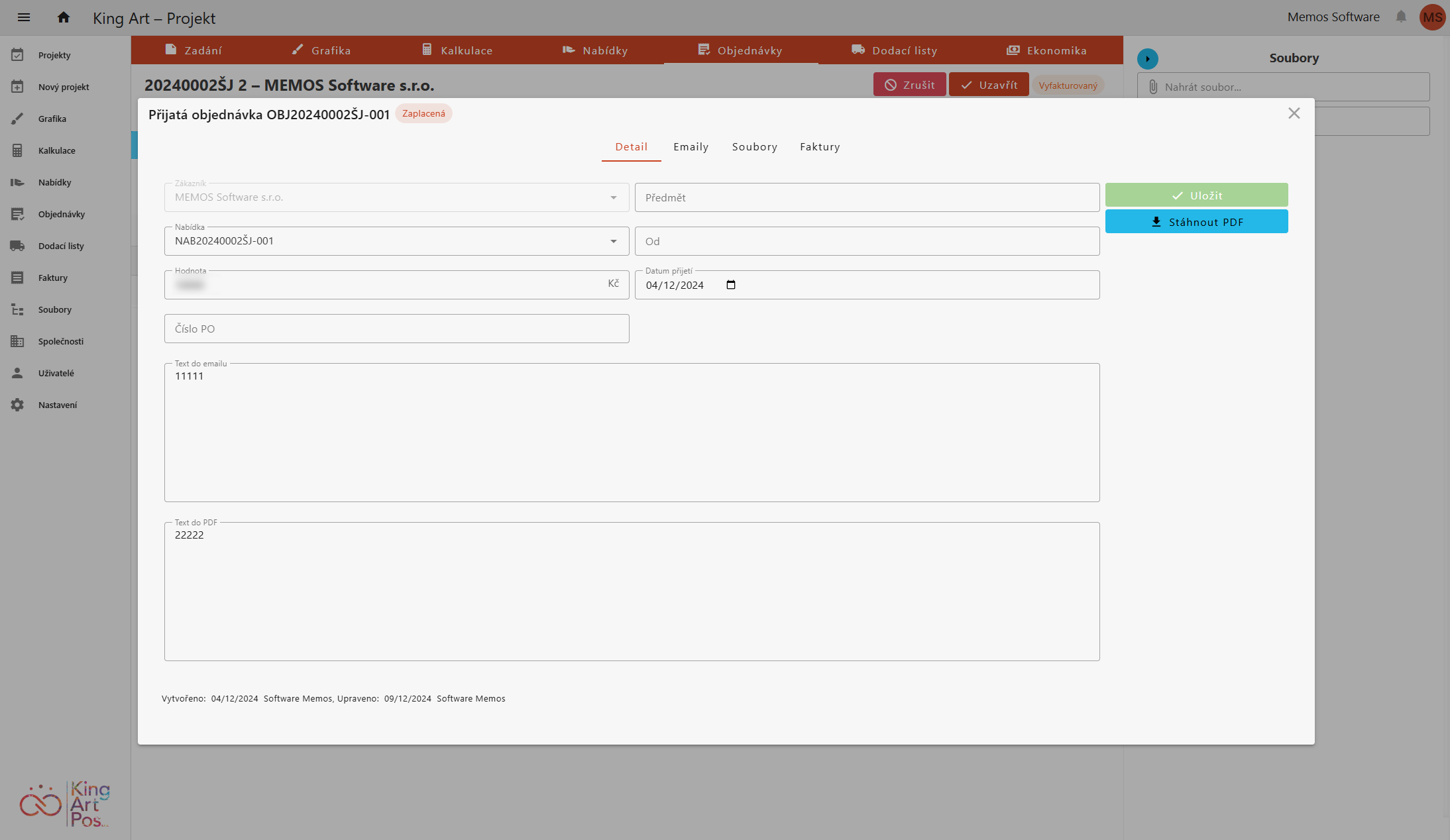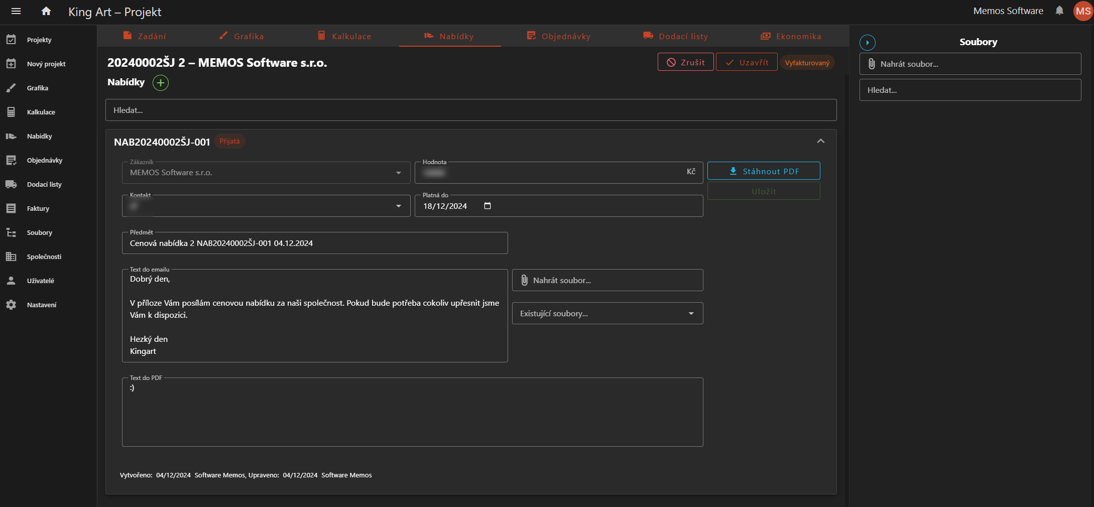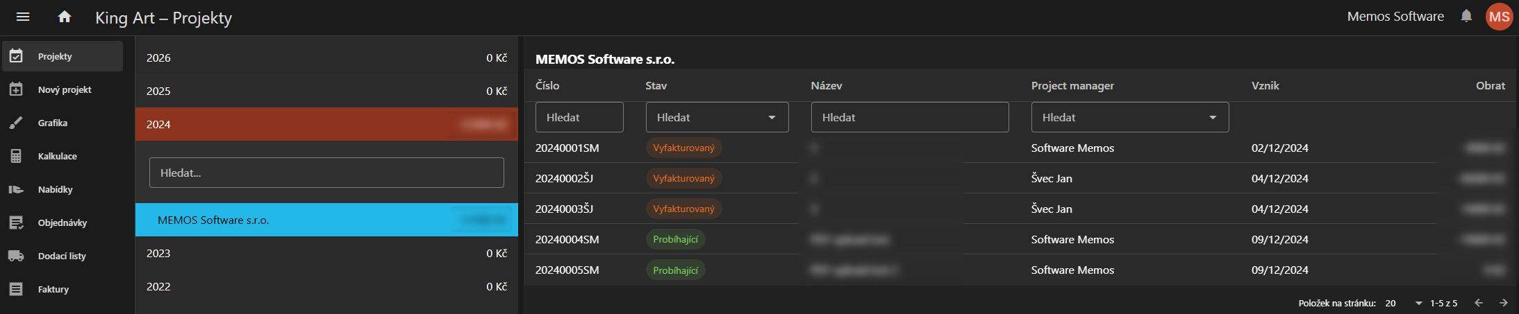 Společnost King Art POS s.r.o. nás poptala na vývoj aplikace pro správu projektů. Aplikace měla umožnit správu sítě zákazníků a dodavatelů včetně jejich značek, adres a kontaktů, pod jednotlivé značky nahrávat do cloudu soubory, které budou dále snadno dostupné pro sdílení.